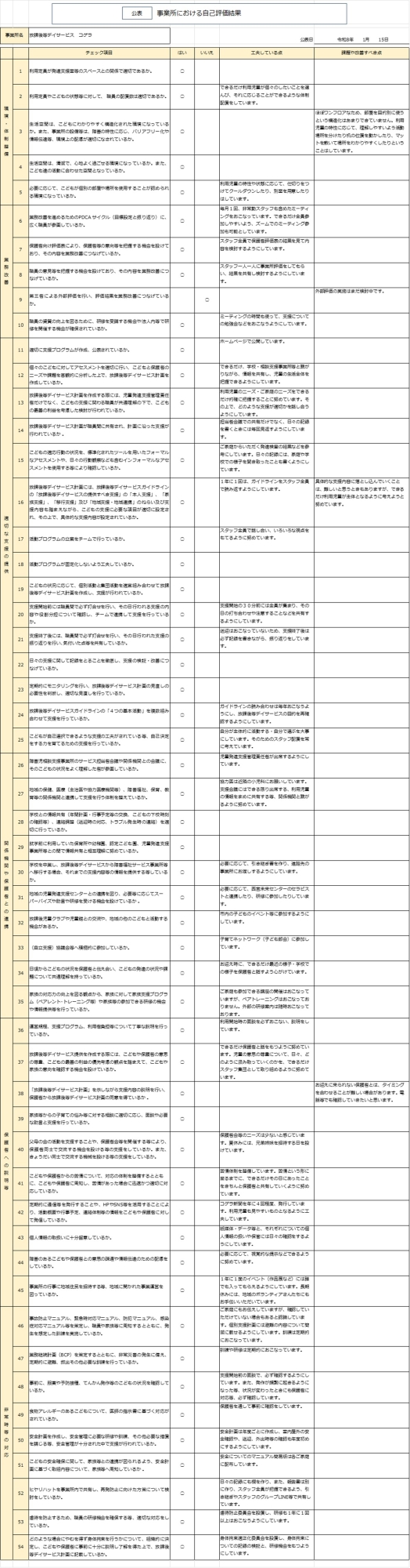 ガイドラインに基づく自己評価表の公開